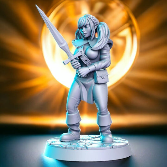 Zeera Frau Elfenritter Schwert Figur 12k + Sockel + BONUS Druck 3D RPG Miniatur Geschenkidee Mini | Dungeons & Dragons | Tabletop | RN Estudio