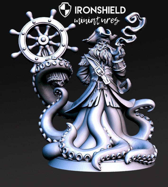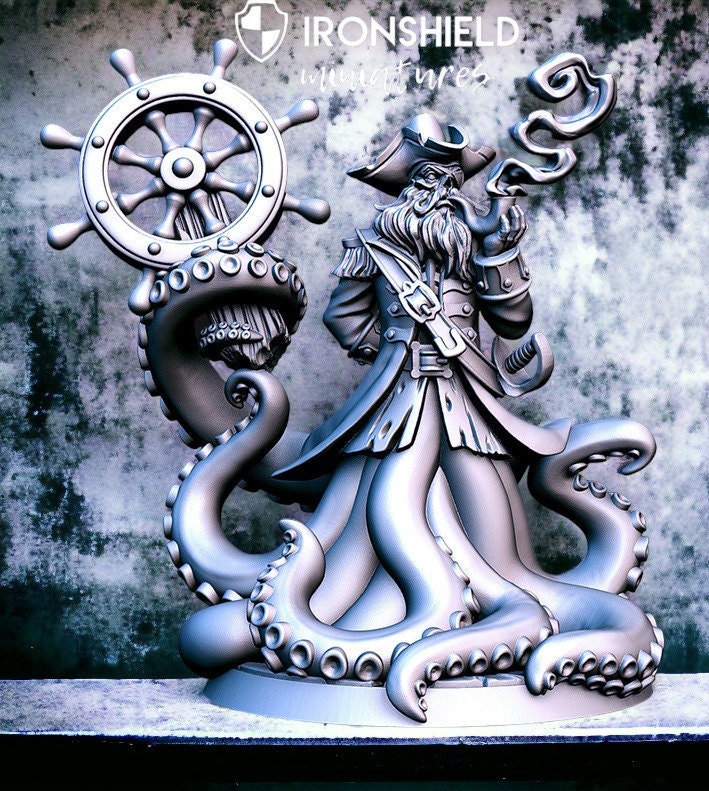 Captain Quidd – Piraten-Oktopus-Kapitän, groß, Mini für D&D-Figur, Druck, 3D, 12.000 Miniatur, Geschenkidee | Dungeons and Dragons | Tabletop