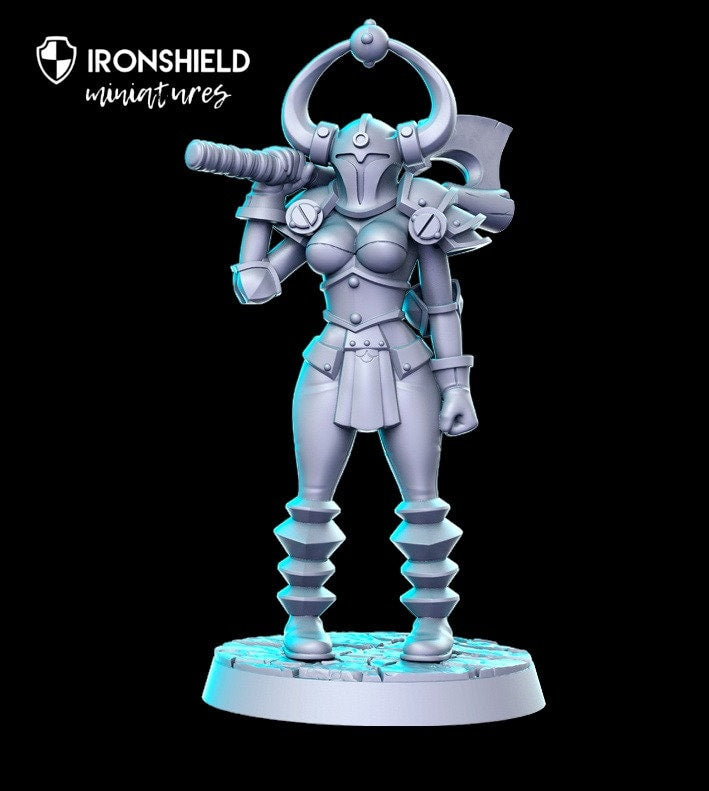 Chaos 3 – Gladiatorin mit Axt für D&D-Figur + Sockeldruck 3D-Miniatur | Geschenkidee | Dungeons and Dragons | Tabletop | RN Estudio