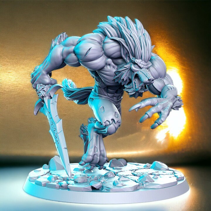 Mondfang Werwolf Schwertkämpfer Bestie Kreatur für Dnd Figur Druck 3D Harz 12k 32mm Miniaturen Figuren Mini