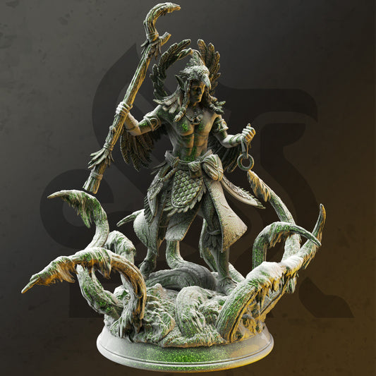 Figurine Zarbaeth, archidruide elfique à plumes, avec socle imprimé, miniature 3D 12 000 $, idée cadeau | Donjons et Dragons | Jeux de table | Cachette de DM