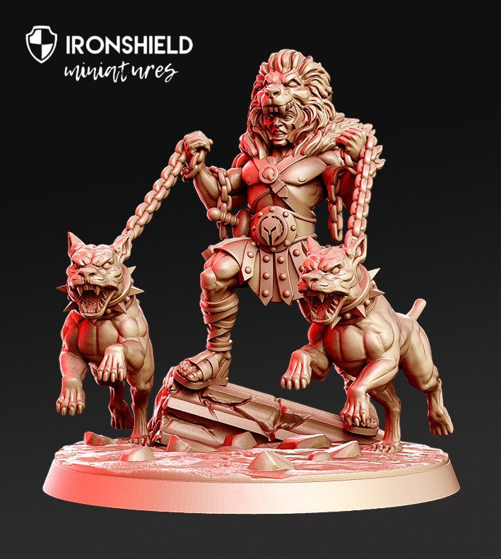 Gladiateur d'Héraklion avec chiens Sparta Barbare mini pour figurine dnd impression 3D 12k miniatures miniatures Idée cadeau Donjons et Dragons Tabletop