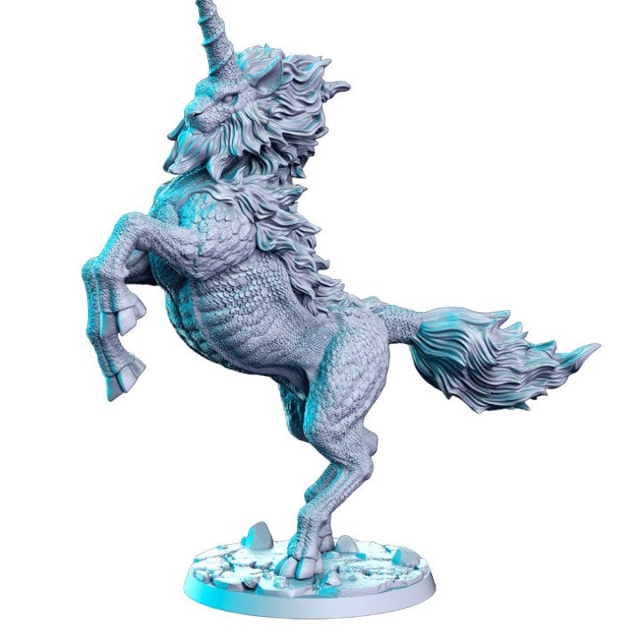 Lion Leocorn avec corne et écailles de dragon monstre pour figurine dnd impression 3D résine 12k 32mm miniatures figurines mini